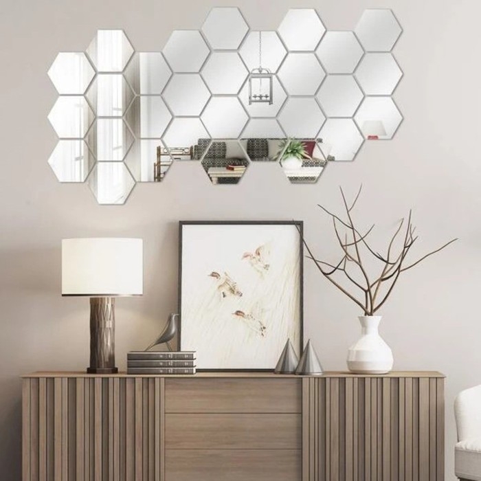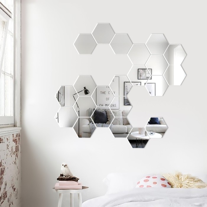 Наклейки интерьерные "Соты", зеркальные, декор настенный, набор 21 шт, шт 8 х 7 см