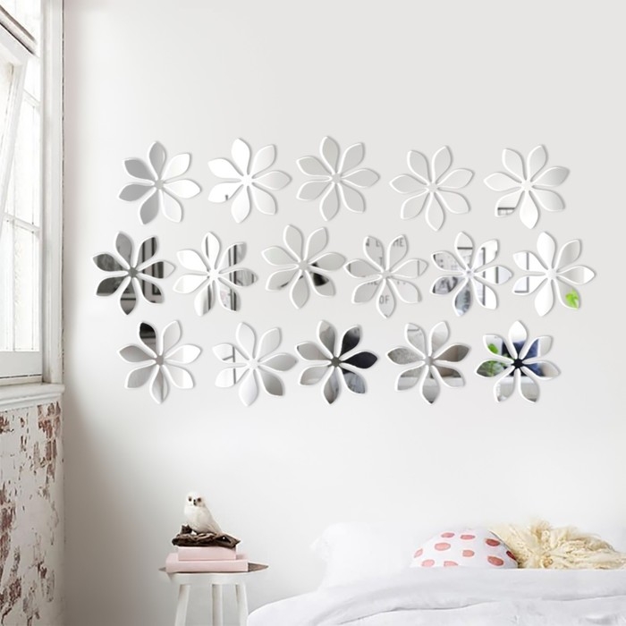 Наклейки интерьерные "Цветочки", зеркальные, декор на стену, набор 16 шт, шт 7 х 7 см