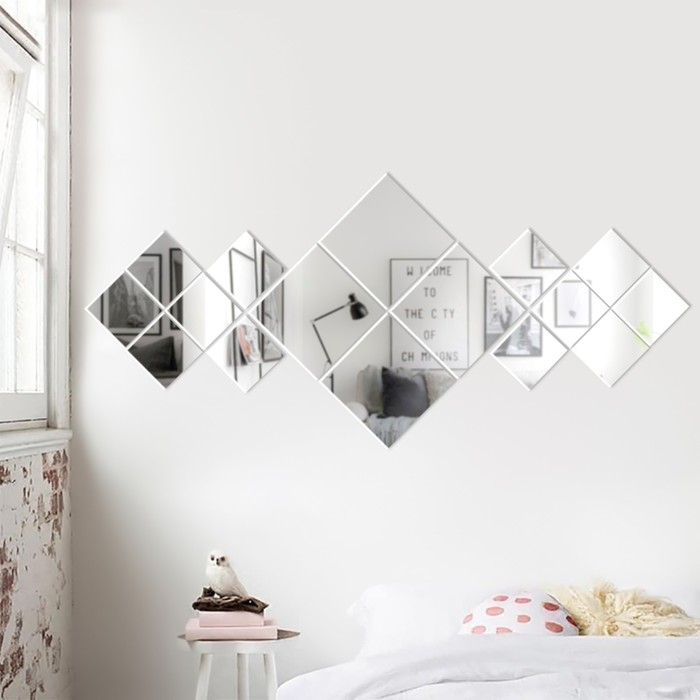 Наклейки интерьерные "Ромбы", зеркальные, декор настенный, панно 25 х 57 см, 16 эл