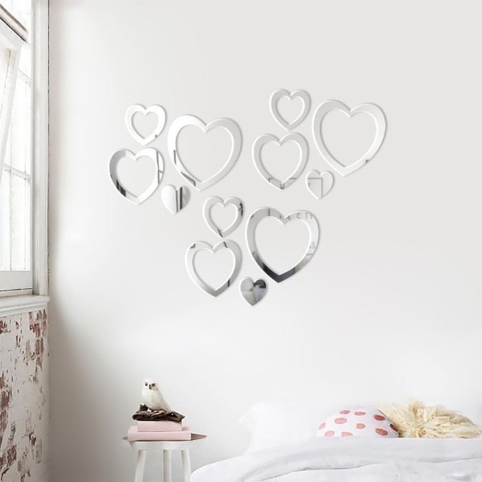 Наклейки интерьерные "Сердца", зеркальные, декор на стену, набор 12 шт, шт 5.5 - 14.6 см