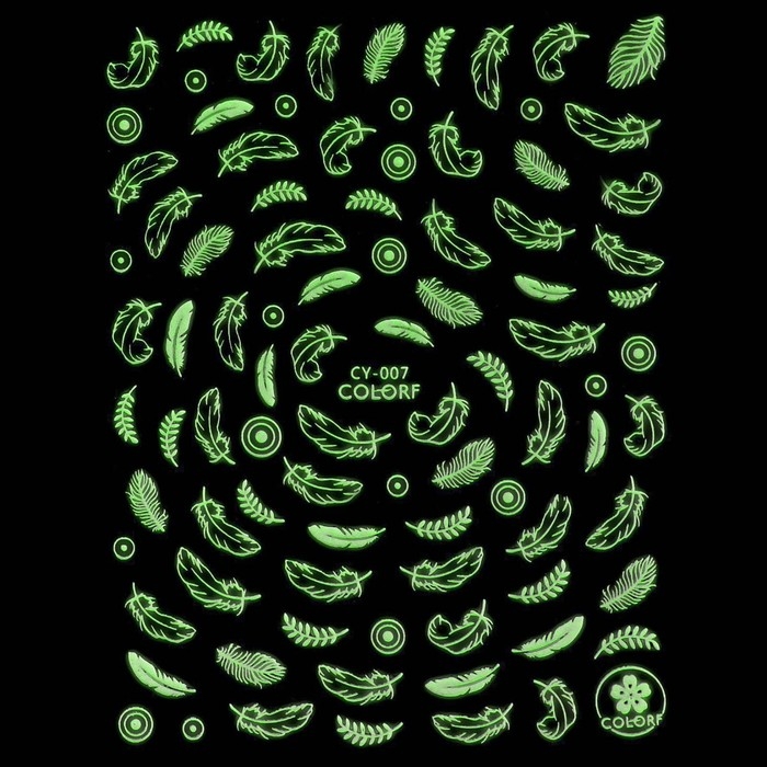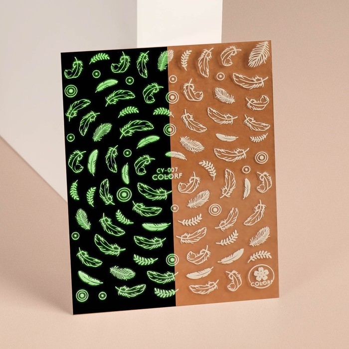 Наклейки для ногтей «Воздушые перья», флуоресцентные, цвет белый