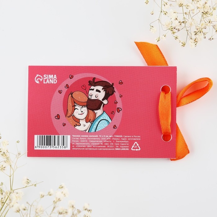 Чековая книжка желаний «Люблю тебя» , 10 х 6 см