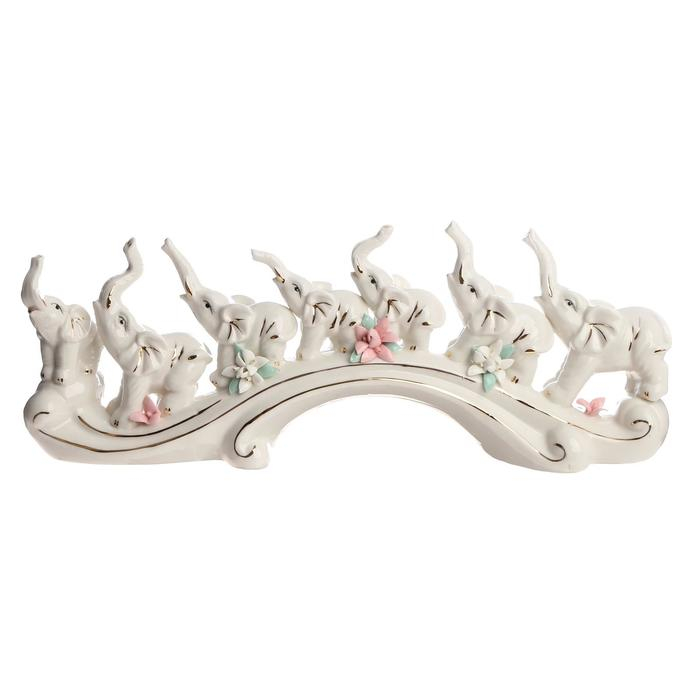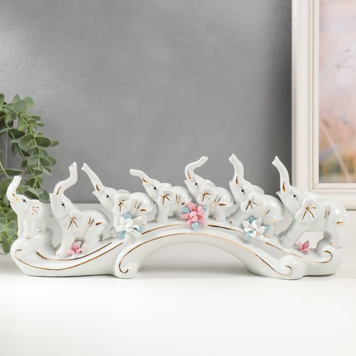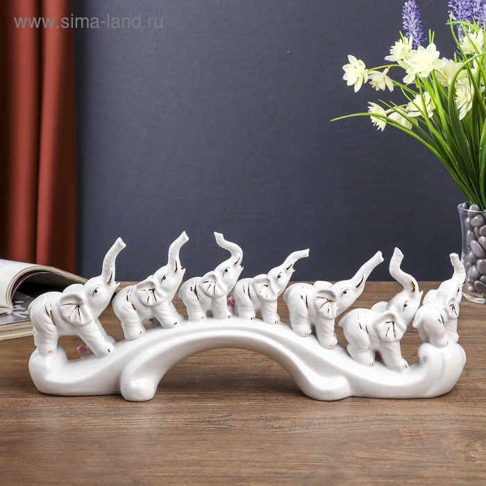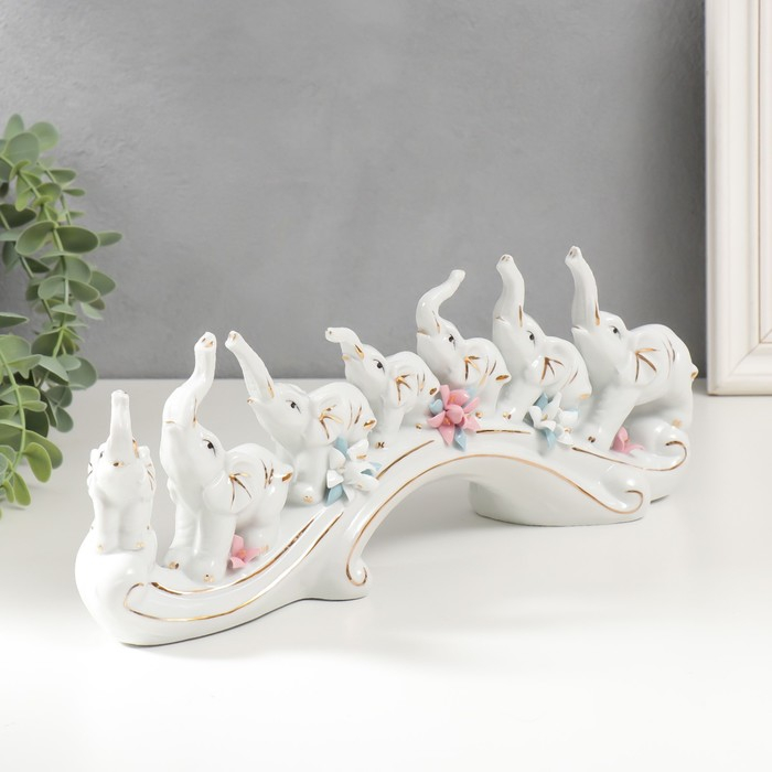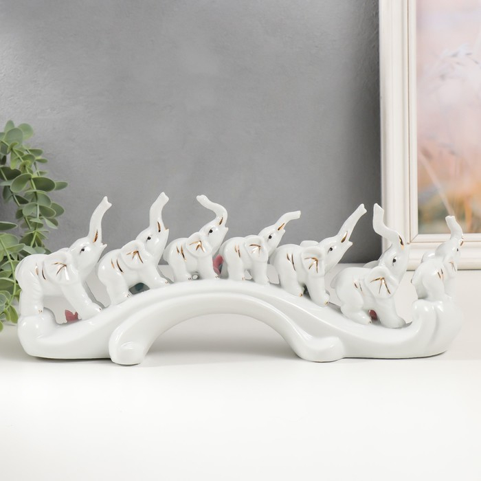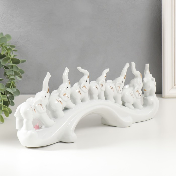 Сувенир керамика "Семь слонов на волне" белые 13х33,7х7,5 см