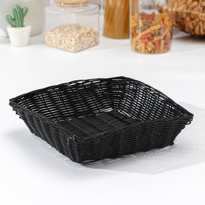 Корзинка для подачи Доляна «Плетёнка», 24×24×6,5 см, цвет чёрный