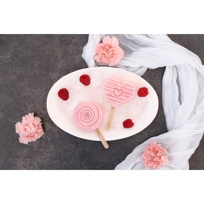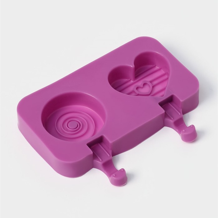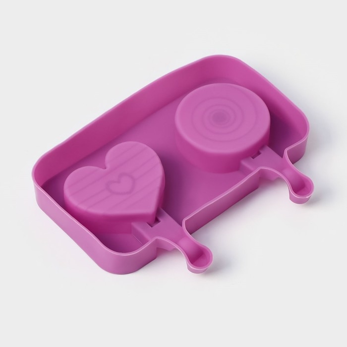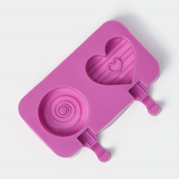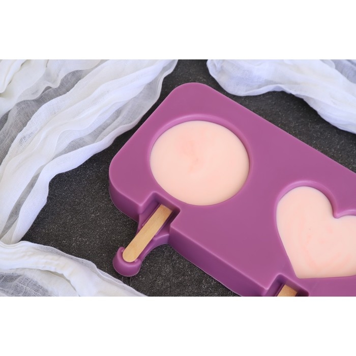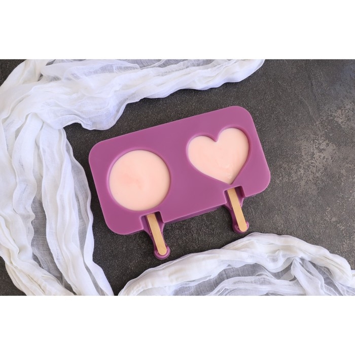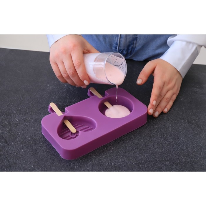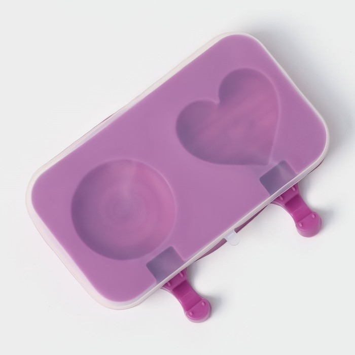 Форма для мороженого «Любовь», силикон, 19,5×11×2,5 см, 2 ячейки, с крышкой и палочками (50 шт), цвет МИКС