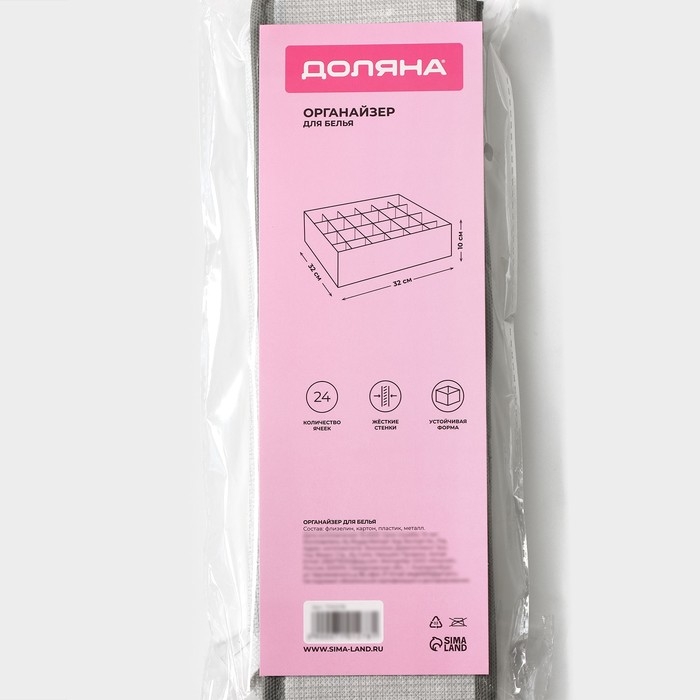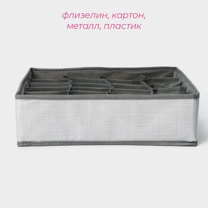 Органайзер для хранения белья Доляна «Нить», 24 ячейки, 32×32×10 см, цвет серый
