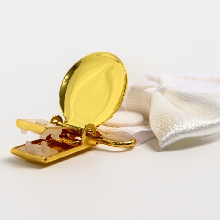 Прищепка для пустышки предотвратит потерю маленького предмета. Используйте специальный держатель, и соска всегда будет под рукой!Изделие фиксируется на одежде ребёнка. На конце цепочки есть карабин, который зацепляется за кольцо пустышки. Надёжное крепление убережёт вещь от падения на пол, если малютка случайно выронит её изо рта.С держателем можно играть, притягательный дизайн точно понравится малышу.Товар изготовлен из качественного нетоксичного материала. Подходит для деток с рождения.