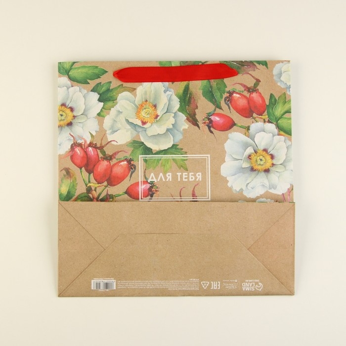 Пакет подарочный крафтовый квадратный, упаковка, «For you», 30 х 30 х 12 см