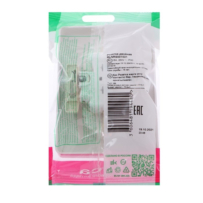 Розетка двойная SE "Хит", 16 А, 250 В, накладная, без з/к, IP20, белая, RA16-237-B