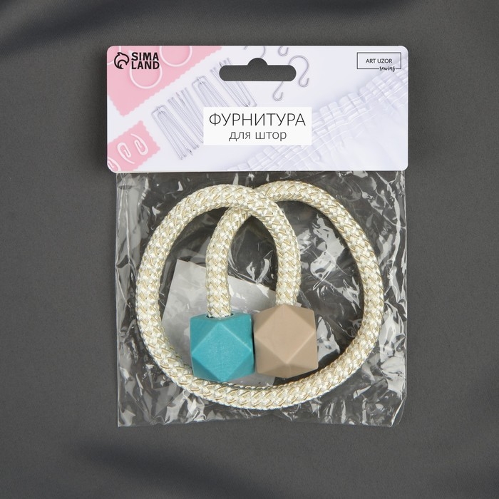 Подхват для штор «Камушки», d = 3 × 46 см, цвет тёмно-бирюзовый/песочный