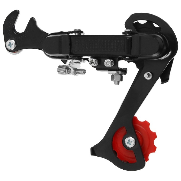 Задний переключатель служит для изменения передаточного числа. Подойдёт для горных и городских велосипедов. Переключатель крепится на крюк.