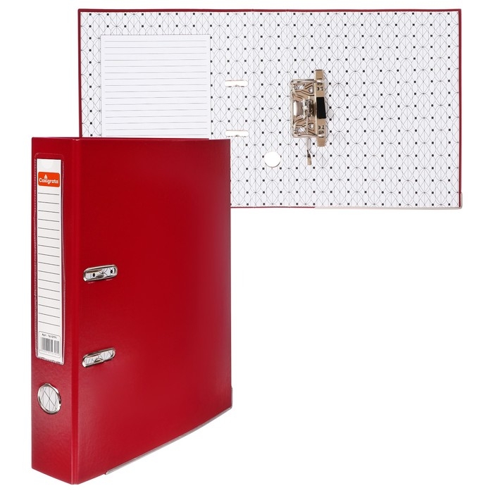 Папка-регистратор Calligrata с арочным механизмом изготовлена из плотного картона, с внешней стороны заламинированного полипропиленовой пленкой (РР) с текстурой "лен", внутри оклеена бумагой с алфавитно-цифровым полем для классификации на левой стороне.