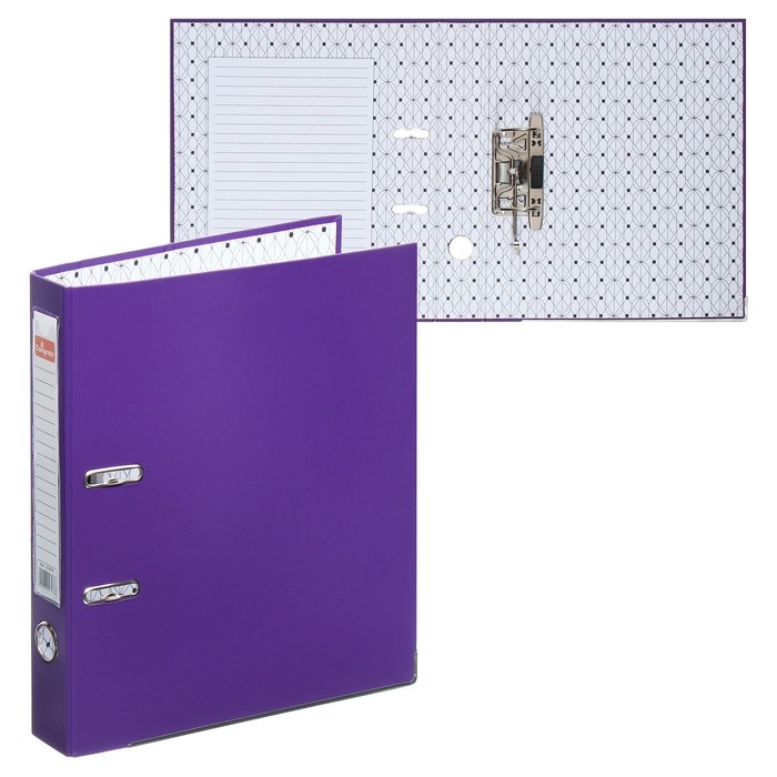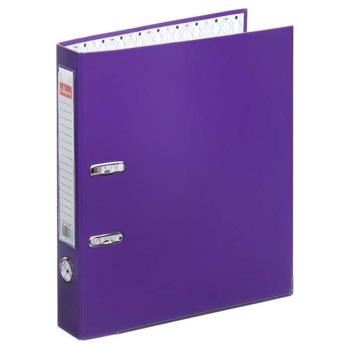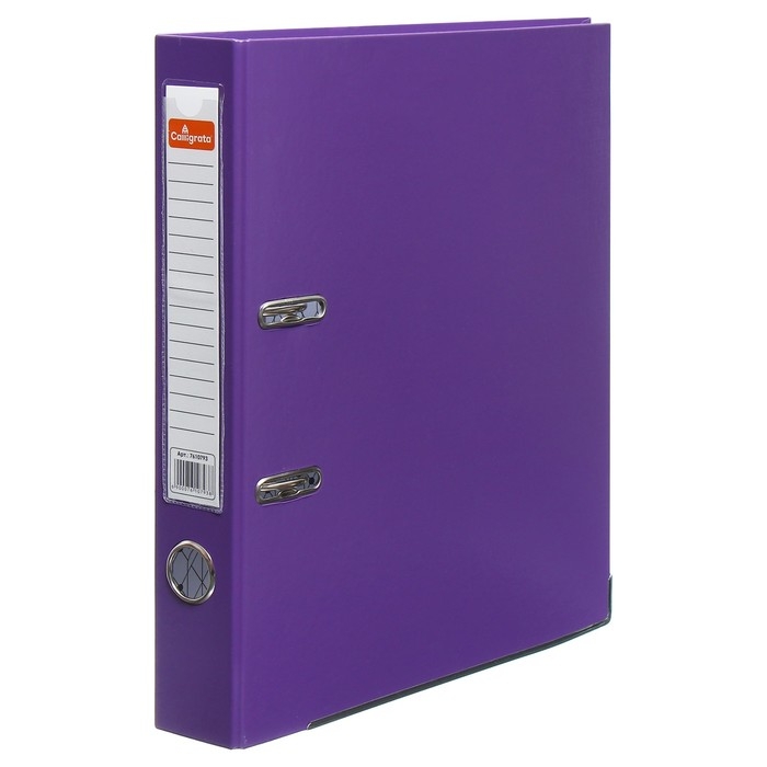 Папка-регистратор А4, 50 мм, Calligrata, ПВХ, тиснение "лен", металлическая окантовка, карман на корешок, собранная, фиолетовая, микс