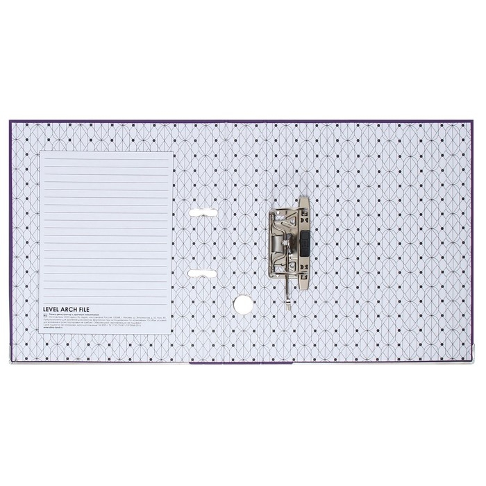 Папка-регистратор Calligrata с арочным механизмом изготовлена из плотного картона, с внешней стороны заламинированного полипропиленовой пленкой (РР) с текстурой "лен", внутри оклеена бумагой с алфавитно-цифровым полем для классификации на левой стороне.