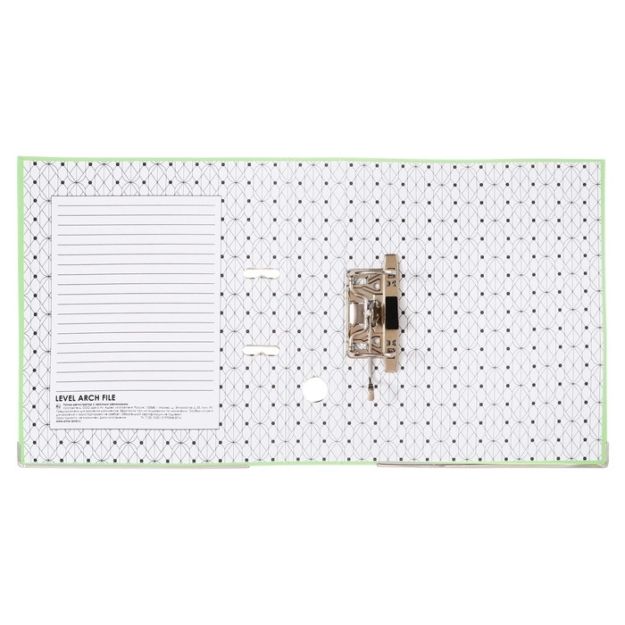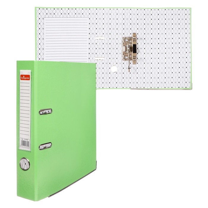 Папка-регистратор Calligrata с арочным механизмом изготовлена из плотного картона, с внешней стороны заламинированного полипропиленовой пленкой (РР) с текстурой "лен", внутри оклеена бумагой с алфавитно-цифровым полем для классификации на левой стороне.