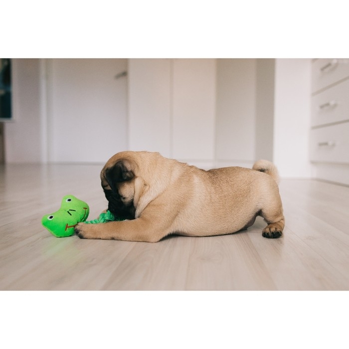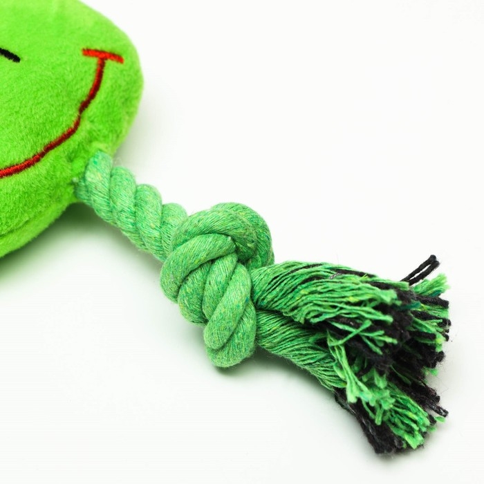 Игрушка мягкая для собак "Лягушка с канатом", с пищалкой, 18 см, зелёная