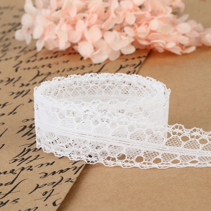 Кружево капроновое, 28 мм × 10 ± 1 м, цвет белый