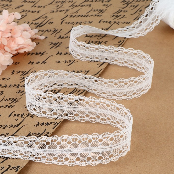 Кружево гипюровое, 15 мм × 14 ± 1 м, цвет белый