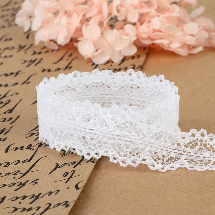 Кружево капроновое, 25 мм × 10 ± 1 м, цвет белый