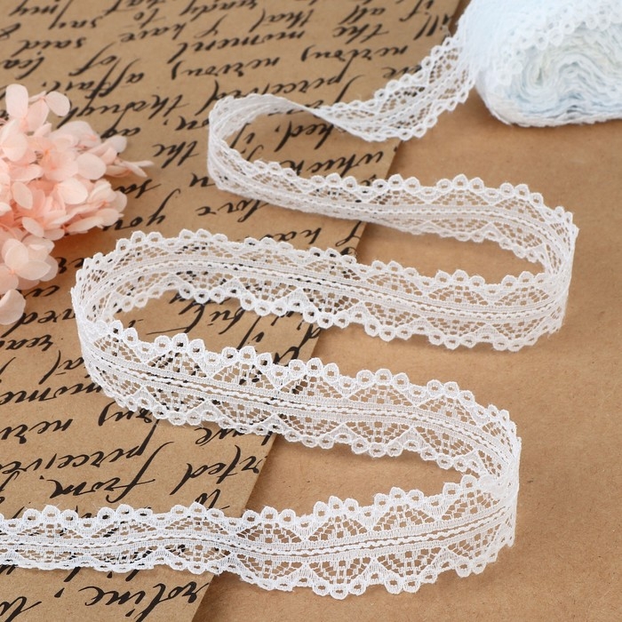 Кружево гипюровое, 15 мм × 14 ± 1 м, цвет белый