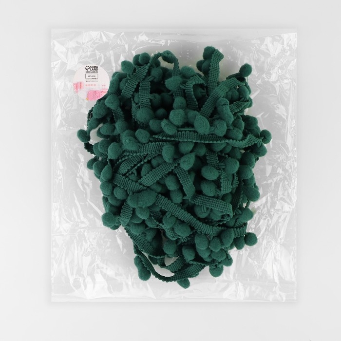 Тесьма декоративная с помпонами, 25 ± 5 мм, 9,1 ± 0,5 м, цвет зелёный