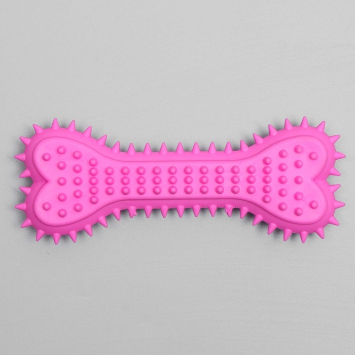 Игрушка жевательная литая "Кость с шипами", 15 х 6 х 2,5 см, розовая