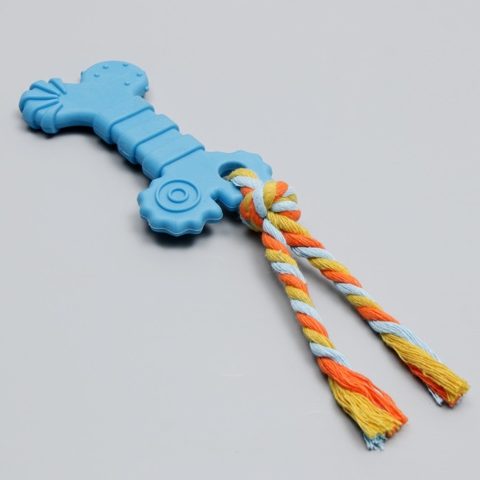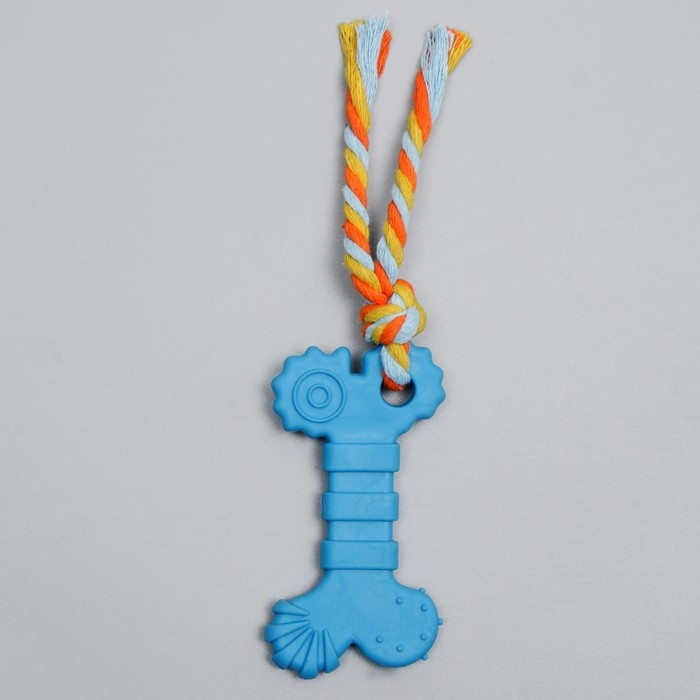 Игрушка жевательная с канатом "Кость с хвостом", синяя