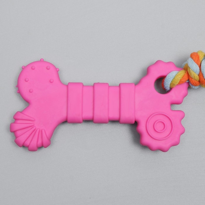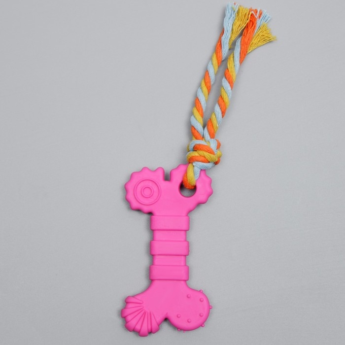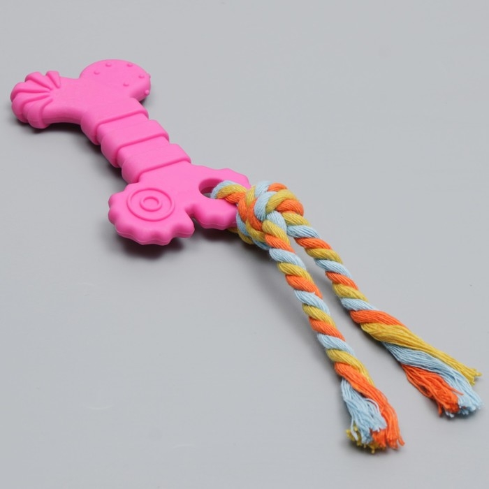 Игрушка жевательная с канатом "Кость с хвостом", розовая