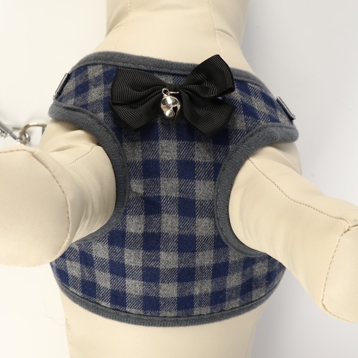 Стильный прогулочный комплект для собак в клетку с украшением в виде бабочки и бубенцом. Шлейка регулируется, поводок круглый прочный , ручка поводка не доставляет неудобств для вас при натежении. Шлея для собак 3 , 5 , 10 , 15 кг средних и мелких пород : шпица , бульдога , чихуахуа , йорка , мопс , такс и маленьких и больших кошек , котов типа мейн кун . Шлейка текстильная , регулируется металическим креплением. Поводок крепится к металлическому кольцу карабином. Шлейка исключит побег животного, если правильно подобрать размер и отрегулировать ремни.