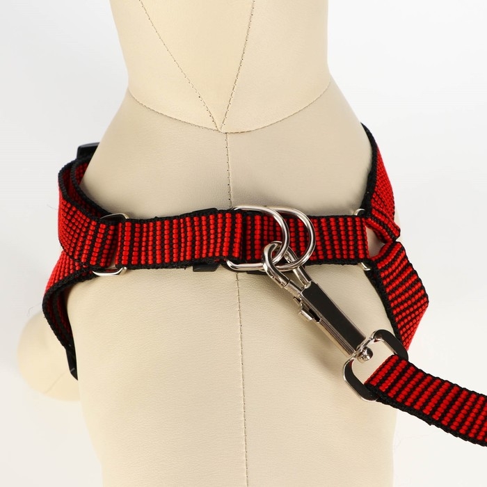 Комплект амуниции с мягкой шлейкой, L, поводок 120 х 1,5 см, ОШ 30-50 см, ОГ 36-56 см, красный 473