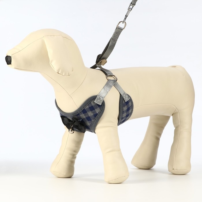 Комплект амуниции с мягкой шлейкой, поводок 120 х 1 см, ОГ 34-58 см, синяя клетка
