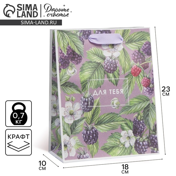 Пакет подарочный крафтовый вертикальный, упаковка, «Для тебя», MS 18 х 23 х 8 см