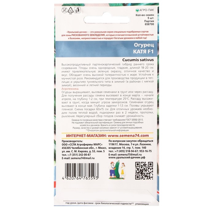 Семена огурца "Великолепная пятерка", F1,набор 5 шт