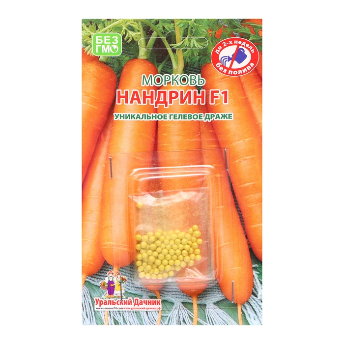 Высокоурожайный гибрид голландской селекции , сортотипа Нантская. Среднеспелый сорт (80-104дня от всходов до уборки). Корнеплод ярко оранжевой окраски, цилиндрической формы, крупный 3,5 см в диаметре, длиной 20-25 см с мощной ботвой, имеет сладкий вкус. Отличное сочетание раннеспелости и высокой. продуктивности. Рассчитана на северные и центральные регионы. Пригоден для хранения и переработки, а также для употребления в свежем виде. Высевать 50 семян на метр, междурядье 50 см. Урожайность 8,0-9,0кг/м2.
