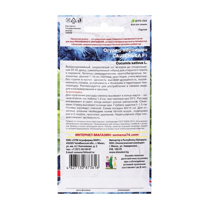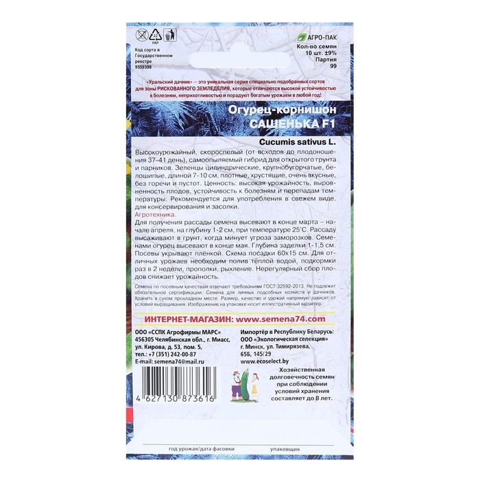Семена Огурец "Сашенька", корнишон, F1, 10 шт