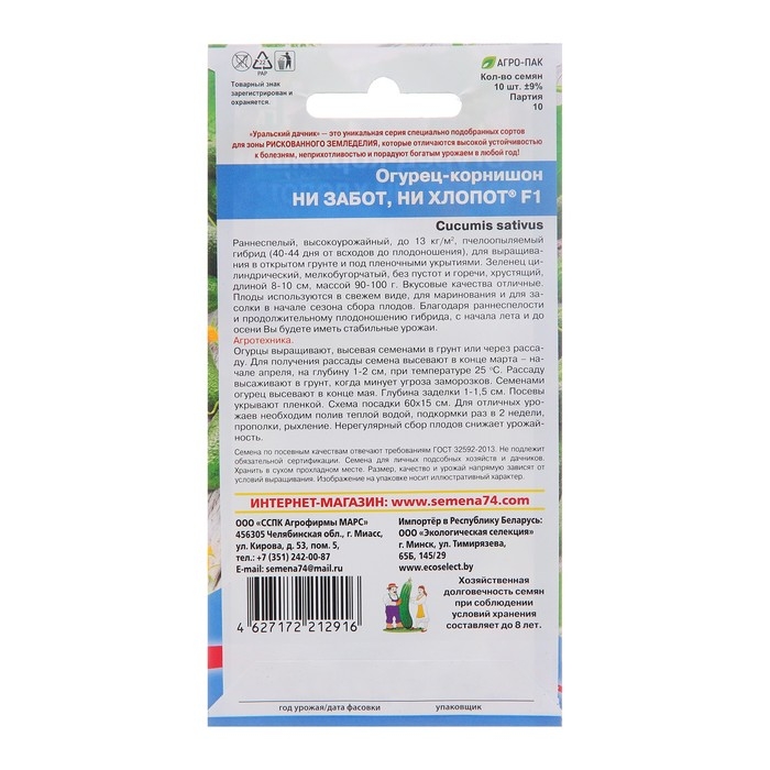 Семена Огурец "Ни забот, ни хлопот", F1, 10 шт