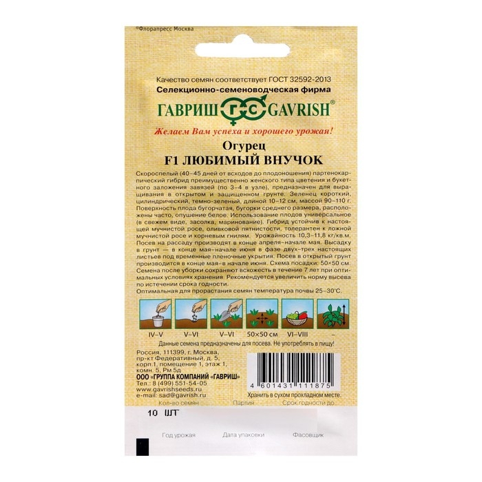 Семена Огурец "Любимый внучок F1", 10 шт