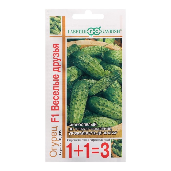 Семена Огурец корнишон "Веселые друзья F1", серия 1+1, 20 шт
