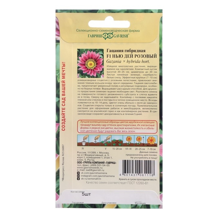 Семена цветов Гацания "Нью Дей Розовый F1", 4 шт