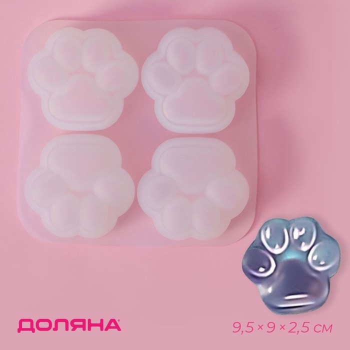 Молд Доляна «Лапки», силикон, 9,5×9×2,5 см, ячейка 4×4 см, цвет белый