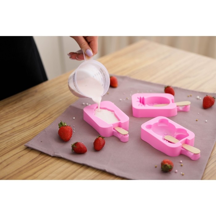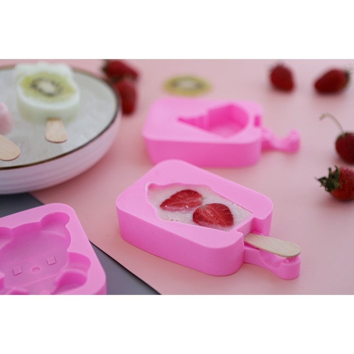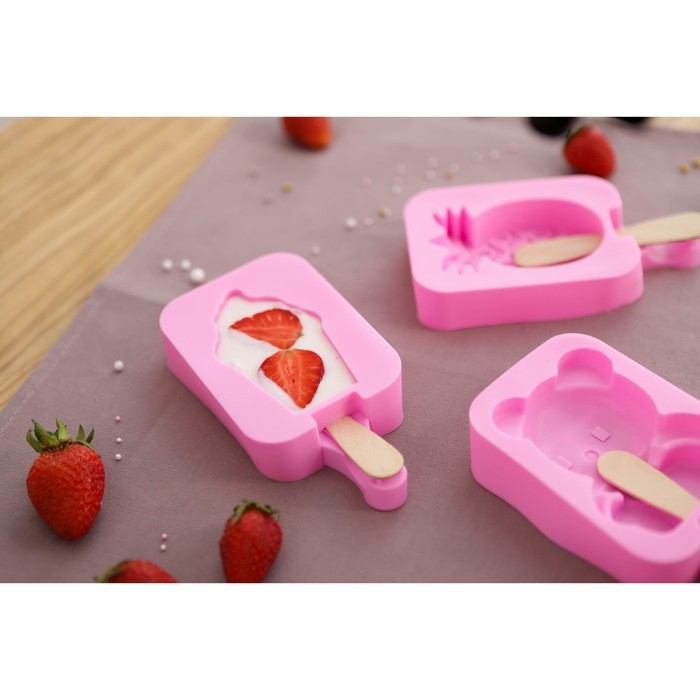 Набор форм для мороженого Доляна, 3 шт, силикон, 14×7,5×2,5 см, цвет розовый