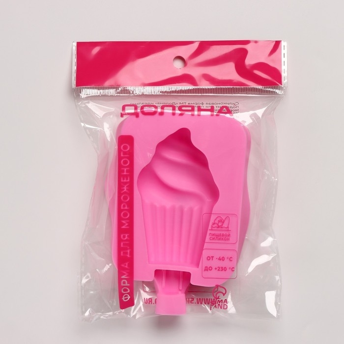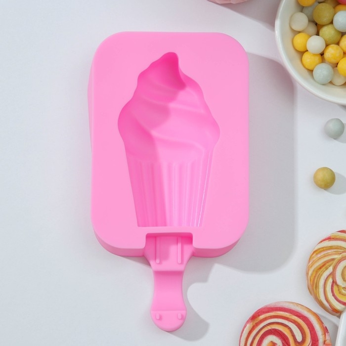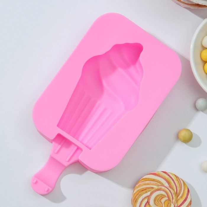 Форма для мороженого Доляна «Капкейк», силикон, 14×7,5×2,5 см, цвет розовый