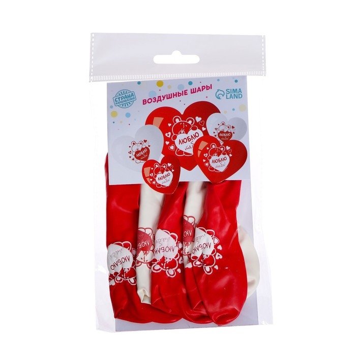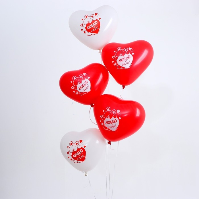 Воздушный шар латексный 12" «Я люблю тебя», мишка, 5 шт.