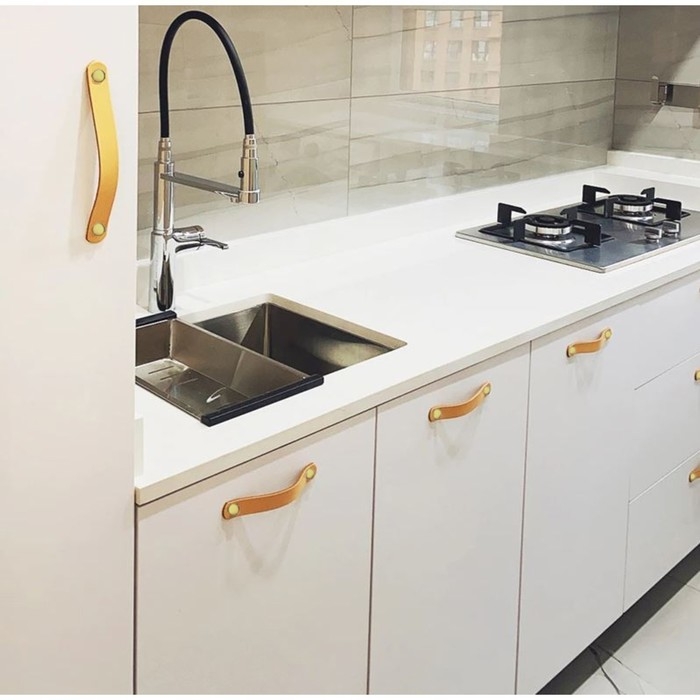 Ручка-скоба CAPPIO RSC010, кожа, м/о 96 мм, цвет бежевый