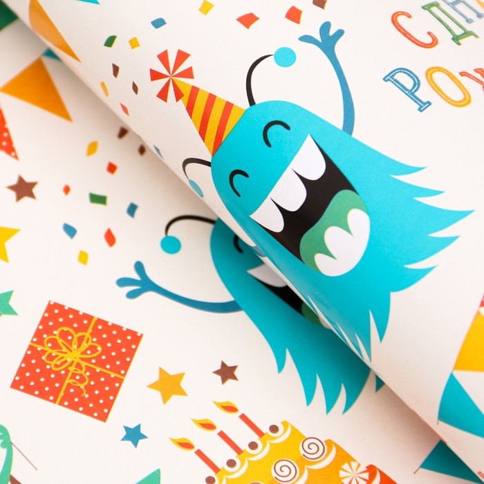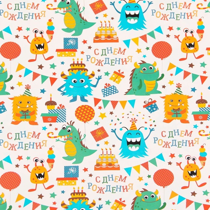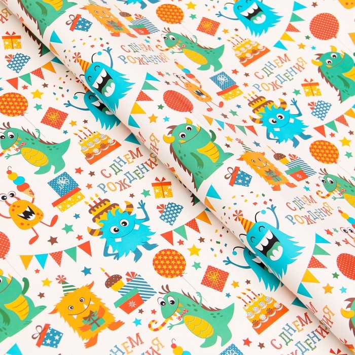 Бумага упаковочная, глянцевая "С Днем Рождения", 70 х 100 см, 1 лист