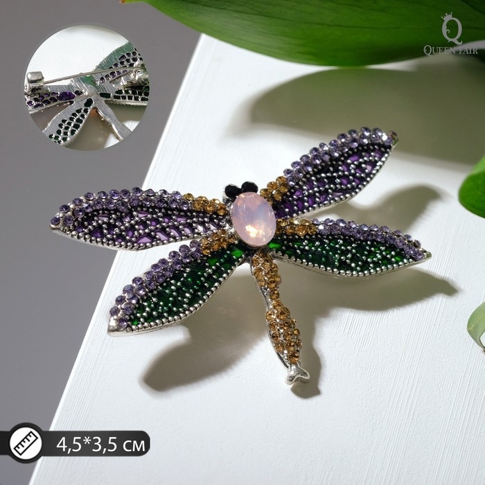 Брошь «Стрекоза», цветная в чернёном серебре