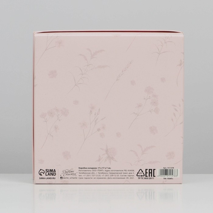 Коробка подарочная складная, упаковка, «Цветы», 17 х 17 х 7 см