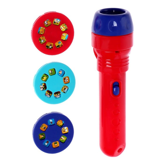 В набор входят: проектор-фонарик и 3 слайда (24 цветные картинки).