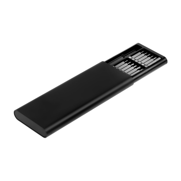 В комплекте есть необходимые шлицы для мелких работ по дому и ремонта электроники. Также металлический футляр с удобным и простым механизмом открывания.