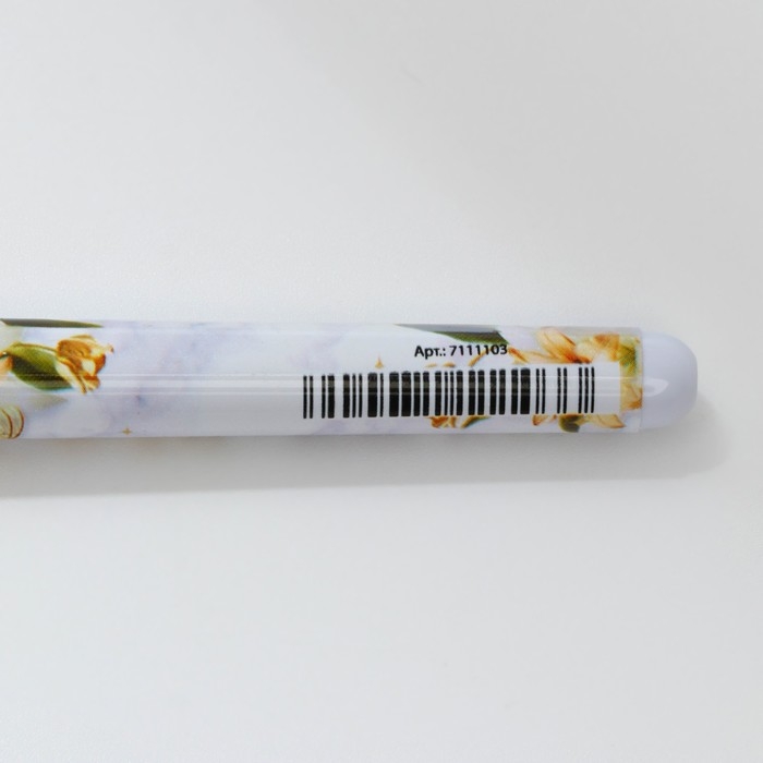 Ручка шариковая синяя паста, пластиковая с цветком "С 8 Марта"